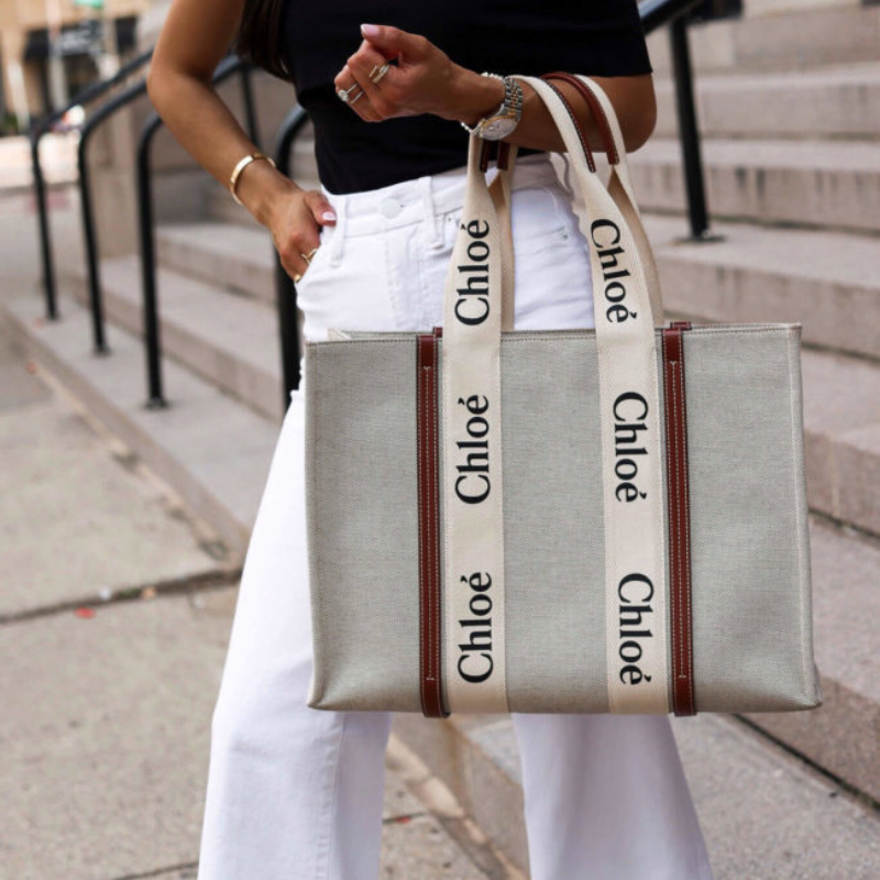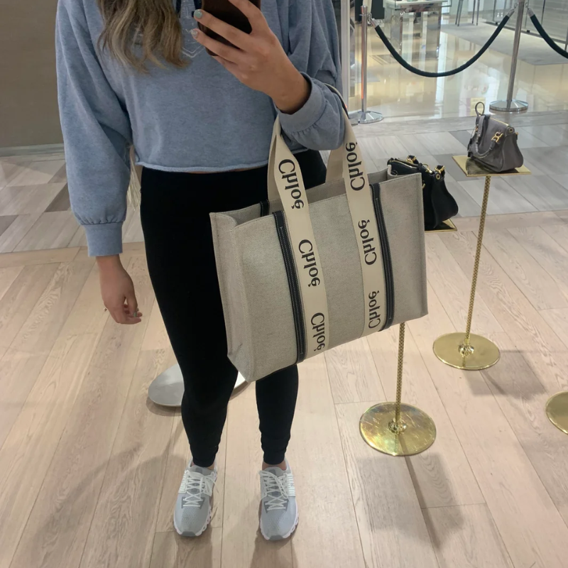 El regreso de las estaciones más cálidas también marca el renacimiento del estilo de uno de nuestros accesorios favoritos, el bolso tote de lona, y la versión Woody Medium de Chloé es el compañero ideal para los días que se pasan bajo el sol. Este modelo con logotipo viene con detalles de cuero marrón y un compartimento interior con un bolsillo.